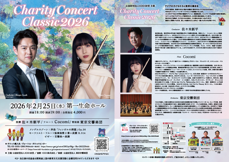 本コンサートは、開発途上国の子どもたちへの支援を目的としており、皆さまのご来場が子どもたちを支える活動につながります。